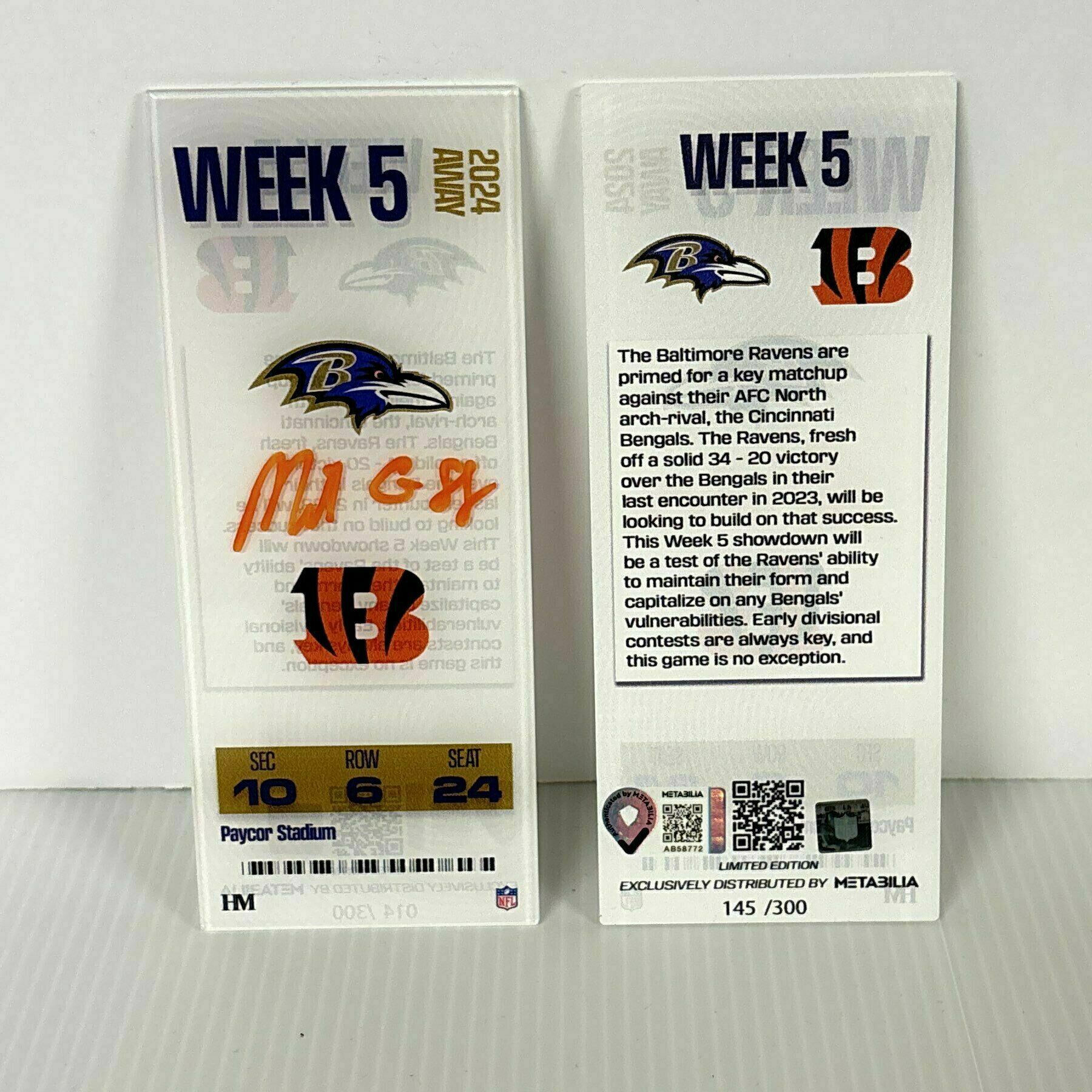 Own a real piece of Bengals history. Through our exclusive official partnership, Metabilia brings fans closer than ever to the game and the stars on the field, offering authentic game-worn memorabilia and exclusive autographed collectibles that capture the story behind every unforgettable Bengals moment.
