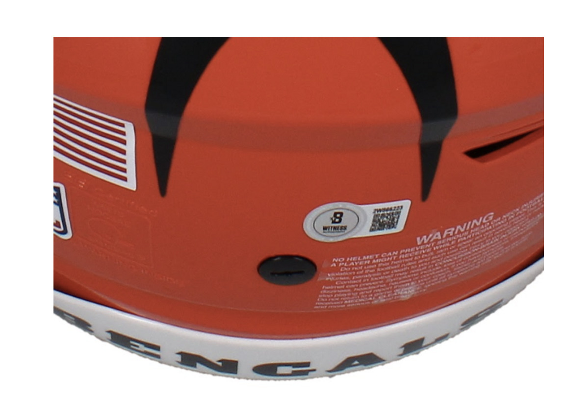 This Bengals authentic Riddell Speedflex helmet has been personally hand-signed by Ja'Marr Chase. It comes with an individually numbered, tamper-evident hologram from Beckett Authentic.