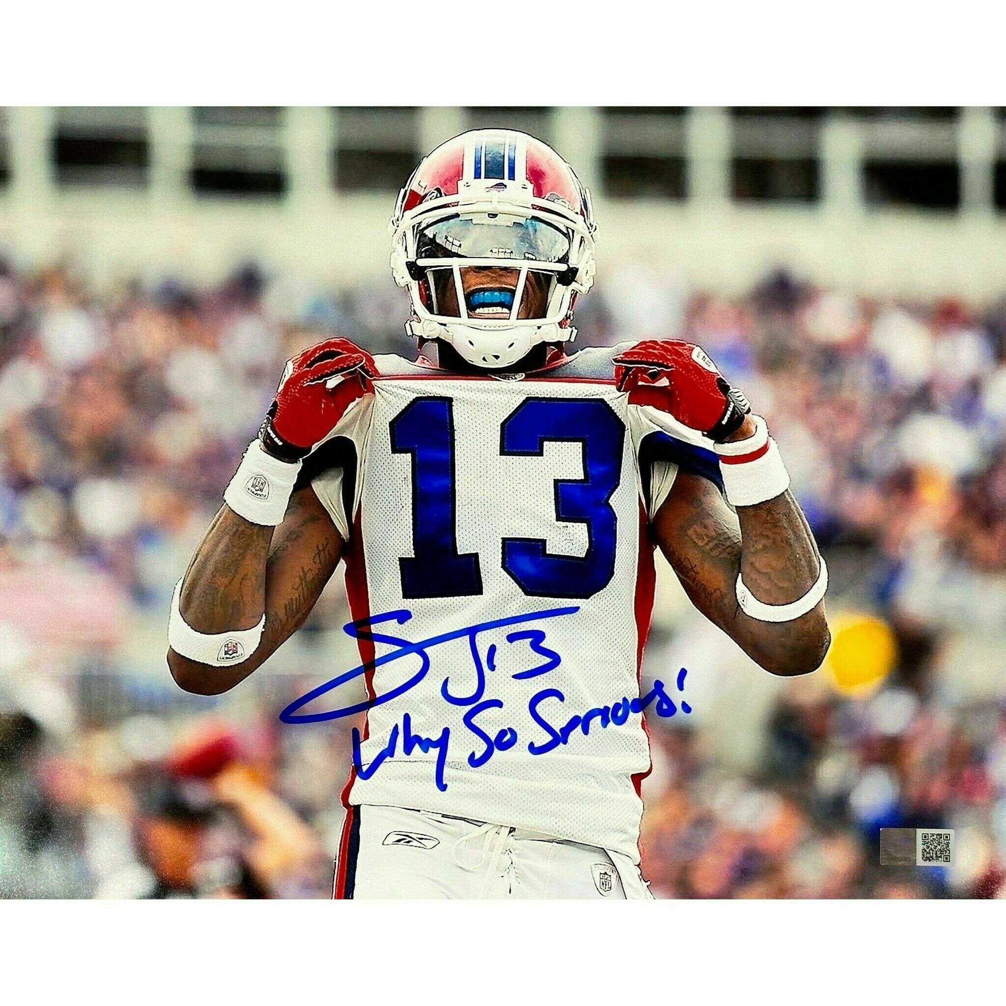Stevie Johnson Signed Jersey Flashing Number 11x14 Photo with Why So Serious