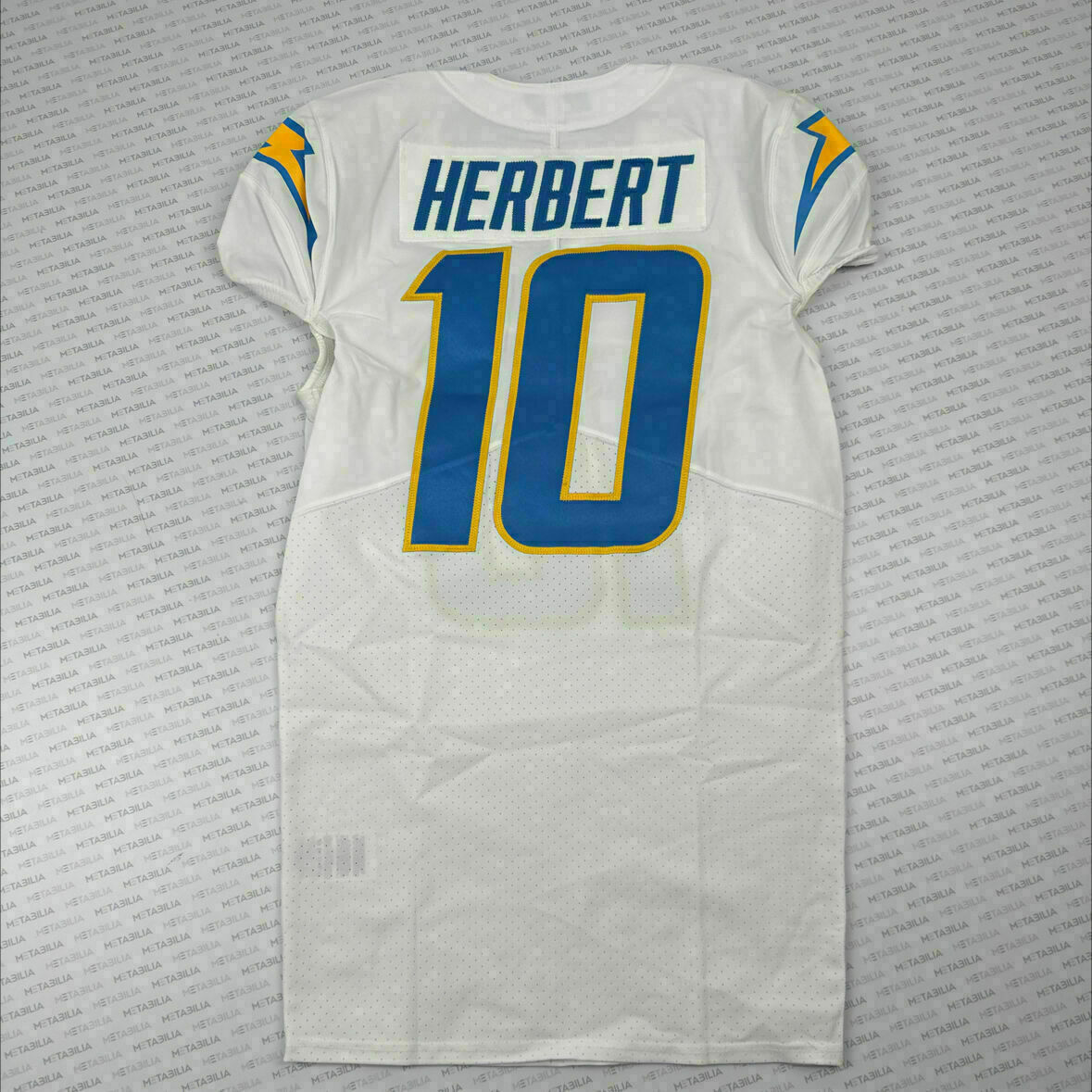 Enter to bid on a #10 Justin Herbert White Team Issued Jersey. Item has a Captains Patch with two stars. The jersey size is 40, the issued year is 2021, and the jersey version is Q-BK. Item is accompanied with a Certificate of Authenticity. Elect to take physical delivery of your item or resell it on Metabilia's Marketplace.