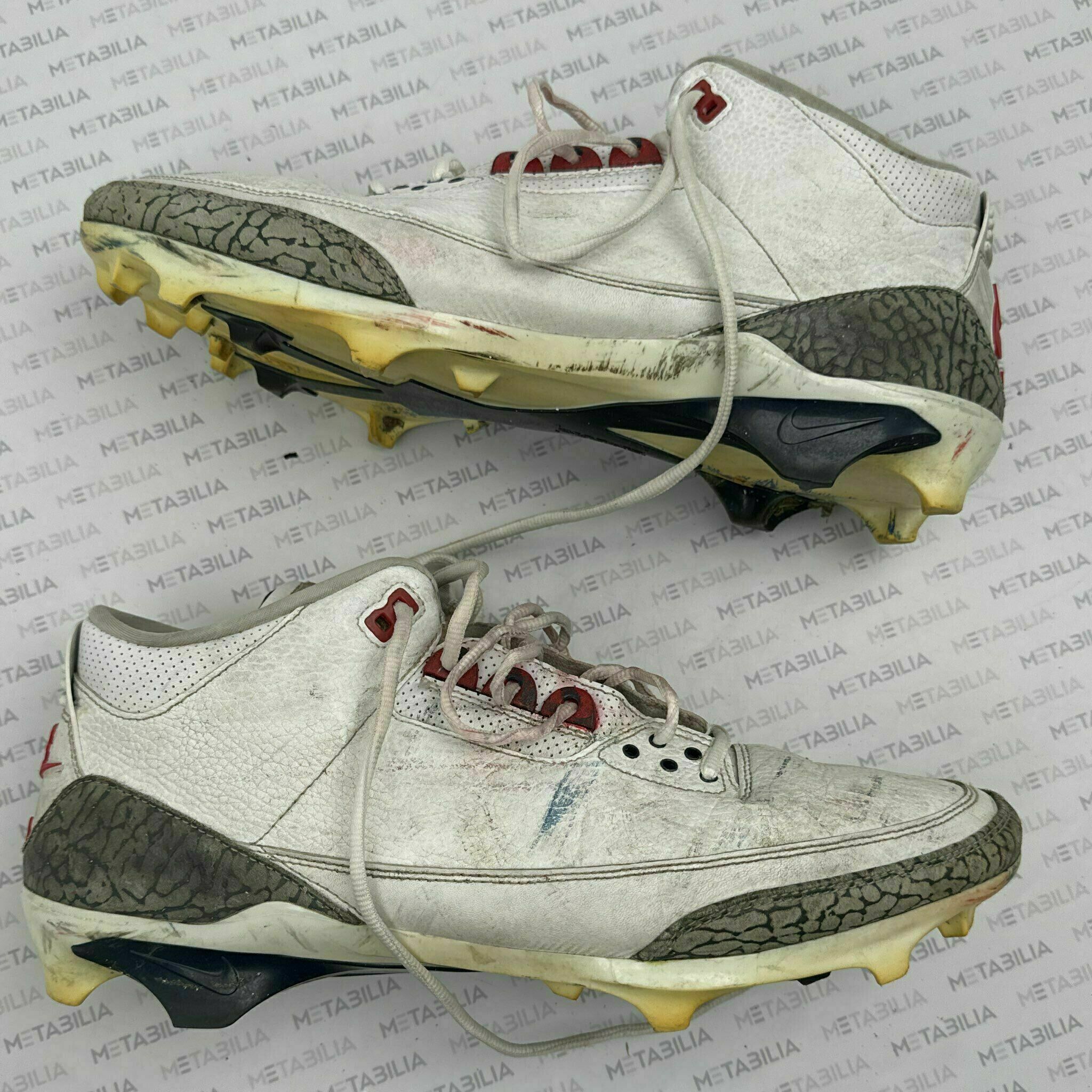 Enter to bid on a pair of #71 Josh Simmons Game-Worn Cleats from the game against the Las Vegas Raiders on January 4, 2026. Item is accompanied with a Certificate of Authenticity. Elect to take physical delivery of your item or resell it on Metabilia's Marketplace.