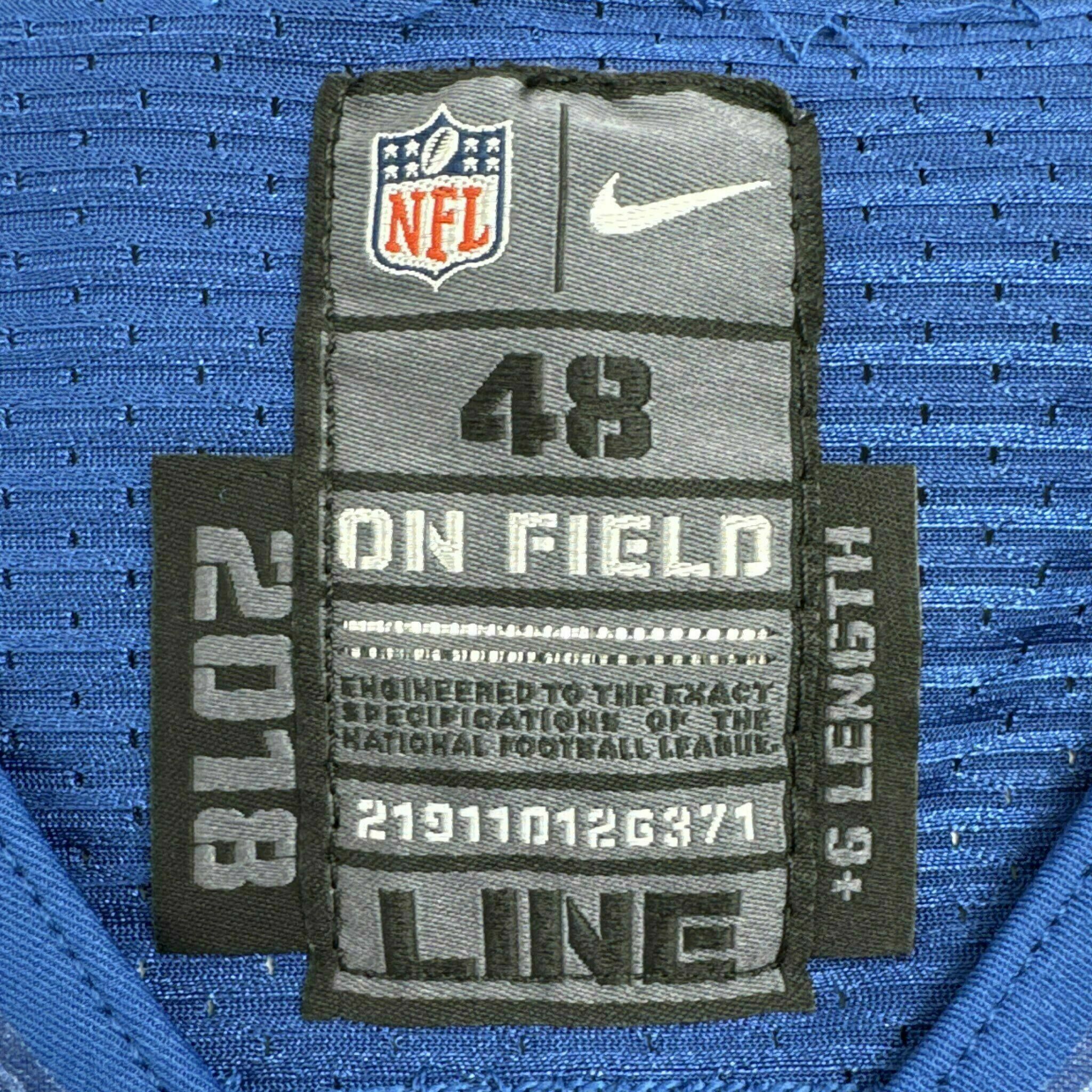 Enter to bid on a #55 Indianapolis Colts Team-Issued Blue Jersey. Size 48, year 2018, and line. Item is accompanied with a Certificate of Authenticity. Elect to take physical delivery of your item or resell it on Metabilia's Marketplace. *NOTE: Jersey may show light signs of wear/have light marks but will remain authenticated as Team-Issued.*