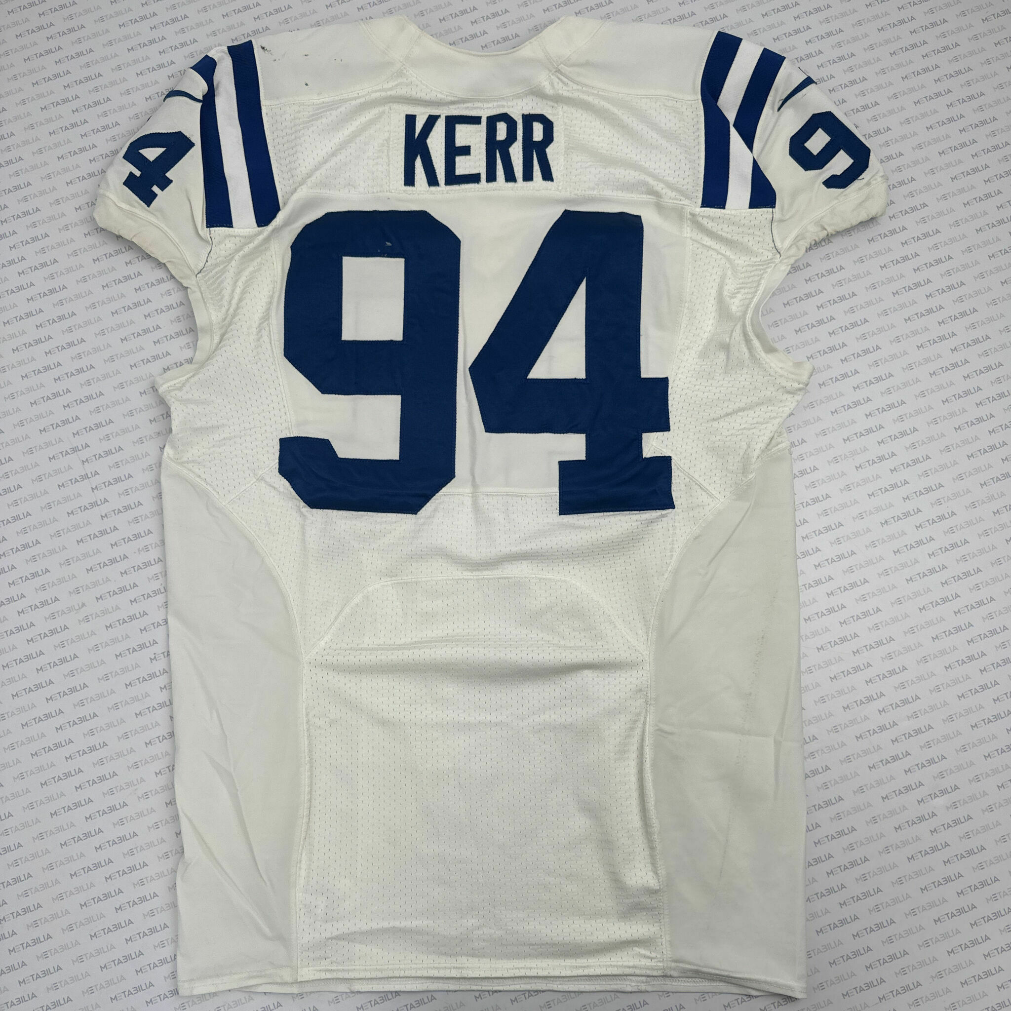 Enter to bid on a #94 Zach Kerr White Team-Issued Jersey. Size 50, year 2012, and style Line. Item is accompanied with a Certificate of Authenticity. Elect to take physical delivery of your item or resell it on Metabilia's Marketplace. *NOTE:Jersey may show light signs of wear/have light marks but will remain authenticated as Team-Issued.*