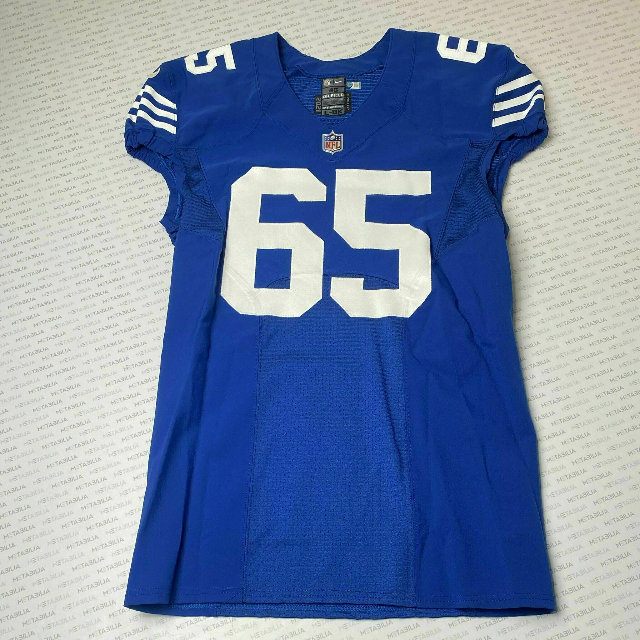 Enter to bid on a #65 Anthony Coyle Indianapolis Colts Team-Issued Blue Jersey. Size 46, year 2021, L-BK. Item is accompanied with a Certificate of Authenticity. Elect to take physical delivery of your item or resell it on Metabilia's Marketplace.