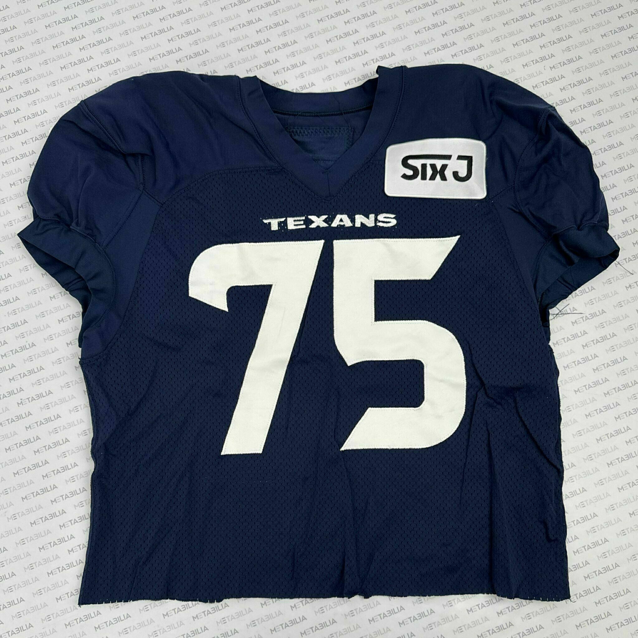 Enter to bid on a #75 Cameron Erving Navy Blue Houston Texans Practice-Worn Jersey . Item is accompanied with a Certificate of Authenticity. Elect to take physical delivery of your item or resell it on Metabilia's Marketplace.