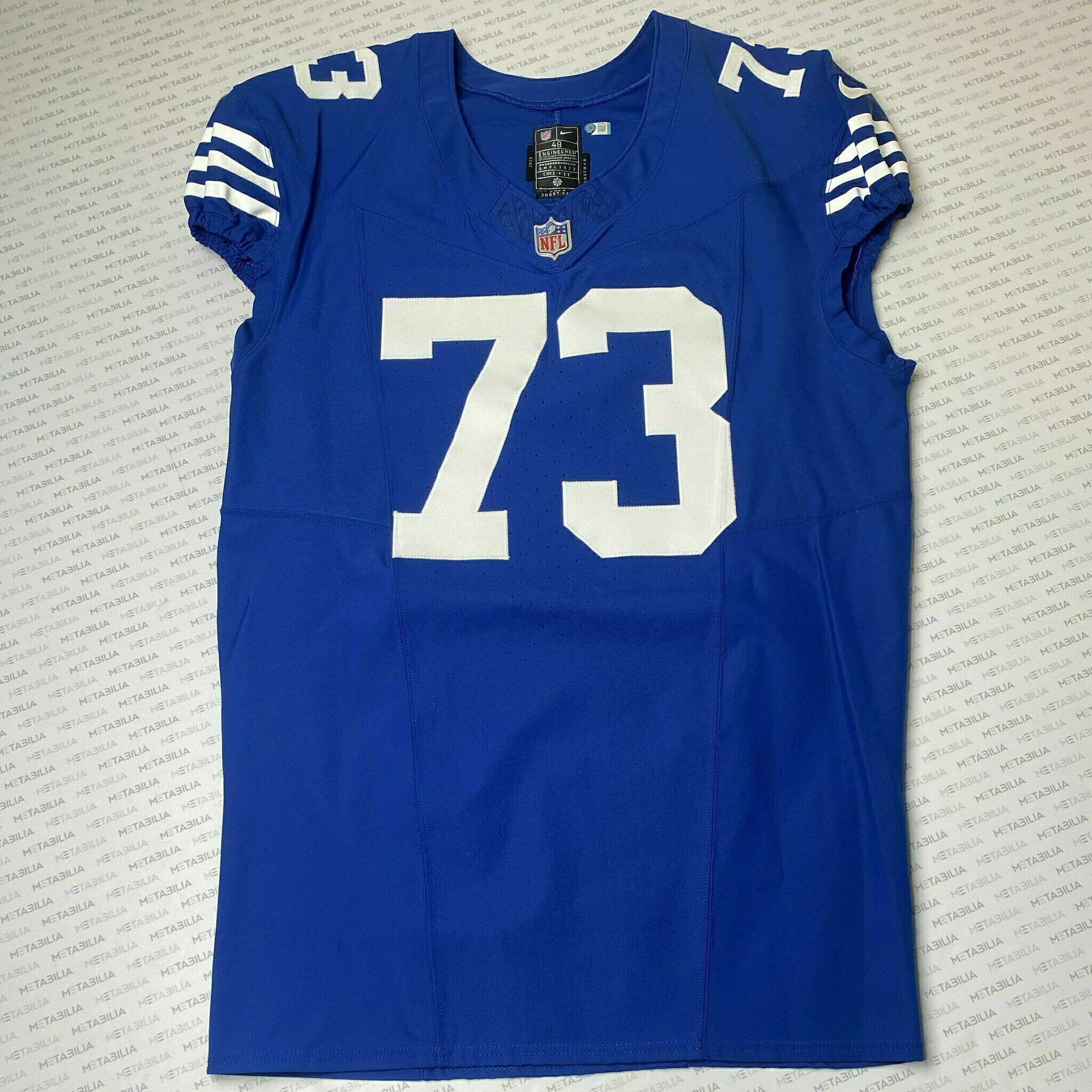 Enter to bid on a #73 Blake Freeland Indianapolis Colts Team-Issued Blue Jersey. Size 48, year 2023. Item is accompanied with a Certificate of Authenticity. Elect to take physical delivery of your item or resell it on Metabilia's Marketplace.