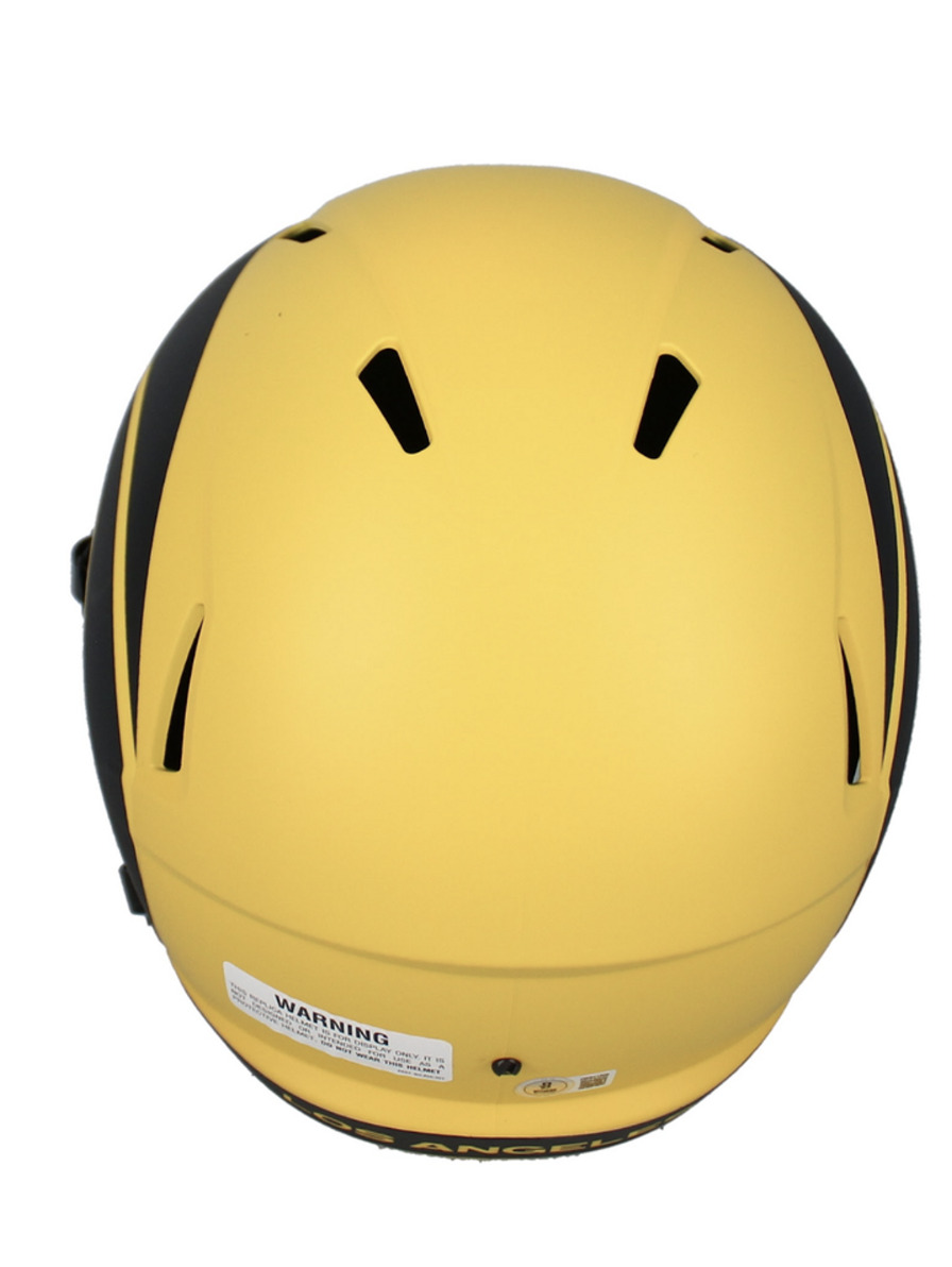 This Los Angeles Rams 'RAVE; full size replica speed helmet has been personally hand-signed by Marshall Faulk. It comes with an individually numbered, tamper-evident hologram from Beckett Authentic.