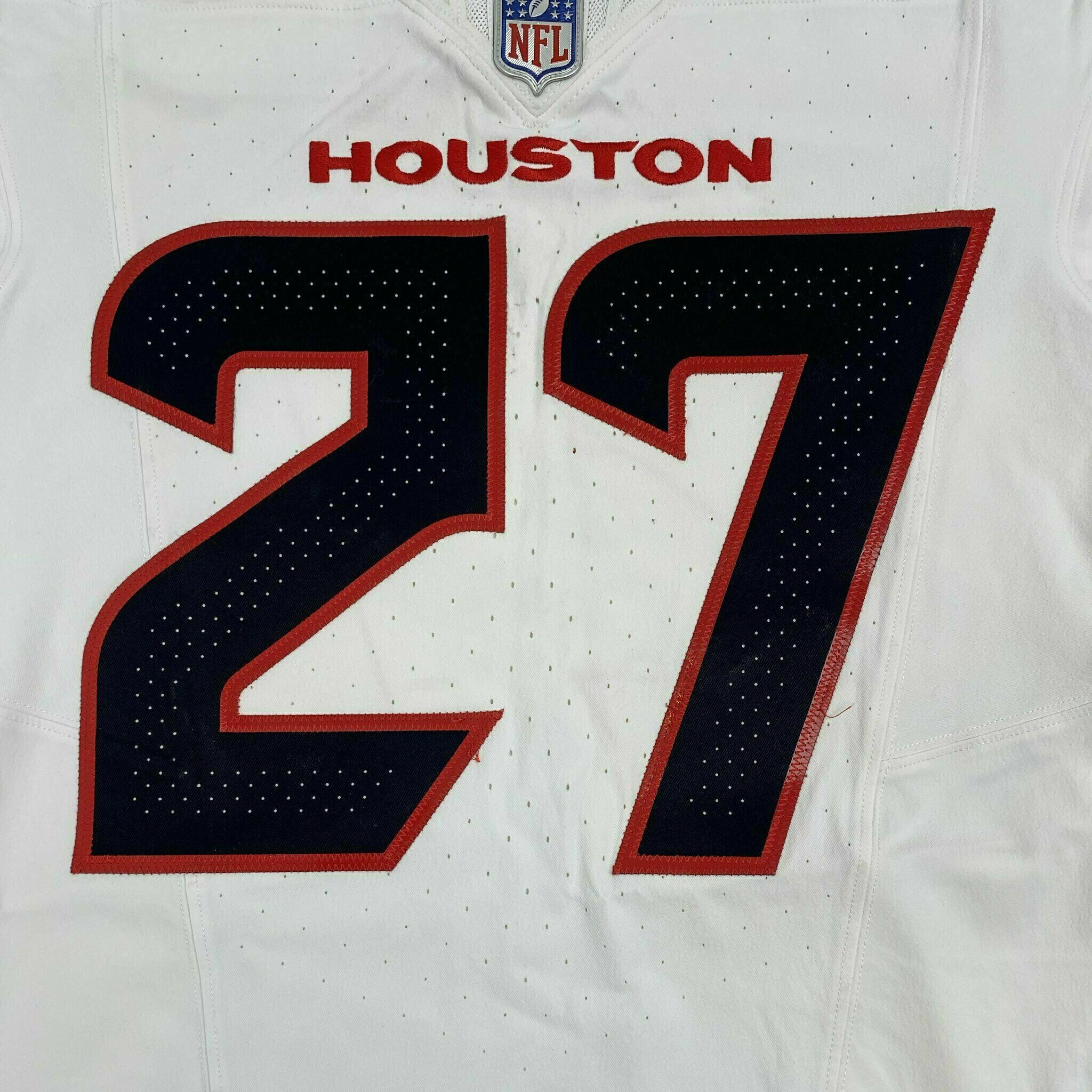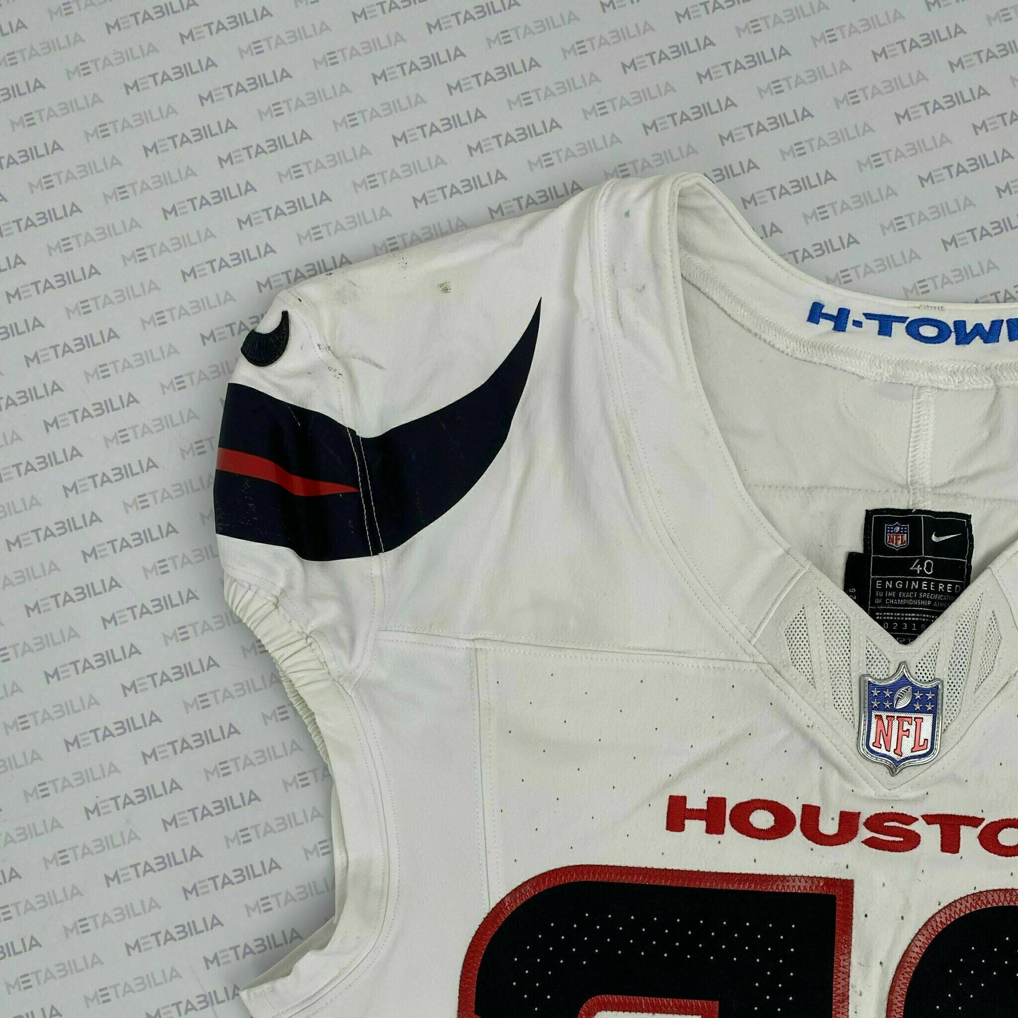 Enter to bid on a #27 Woody Marks Signed & Inscribed Game-Worn Jersey from the Houston Texans 30-6 Wild Card victory against the Pittsburgh Steelers on January 12, 2026. In this game Marks had 112 rushing yards and his first career playoff touchdown! This tem is accompanied with a Certificate of Authenticity. Elect to take physical delivery of your item or resell it on Metabilia's Marketplace.