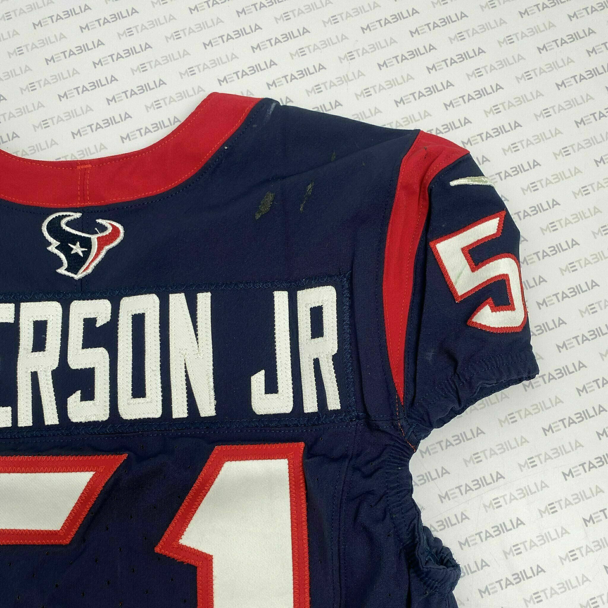 Enter to bid on a #51 Will Anderson Jr Rookie Season Game-Worn Jersey from the Houston Texans 2023-2024 Season. Item is accompanied with a Certificate of Authenticity. Elect to take physical delivery of your item or resell it on Metabilia's Marketplace. NOTE: JERSEY IS NOT MATCHED TO A SPECIFIC GAME.